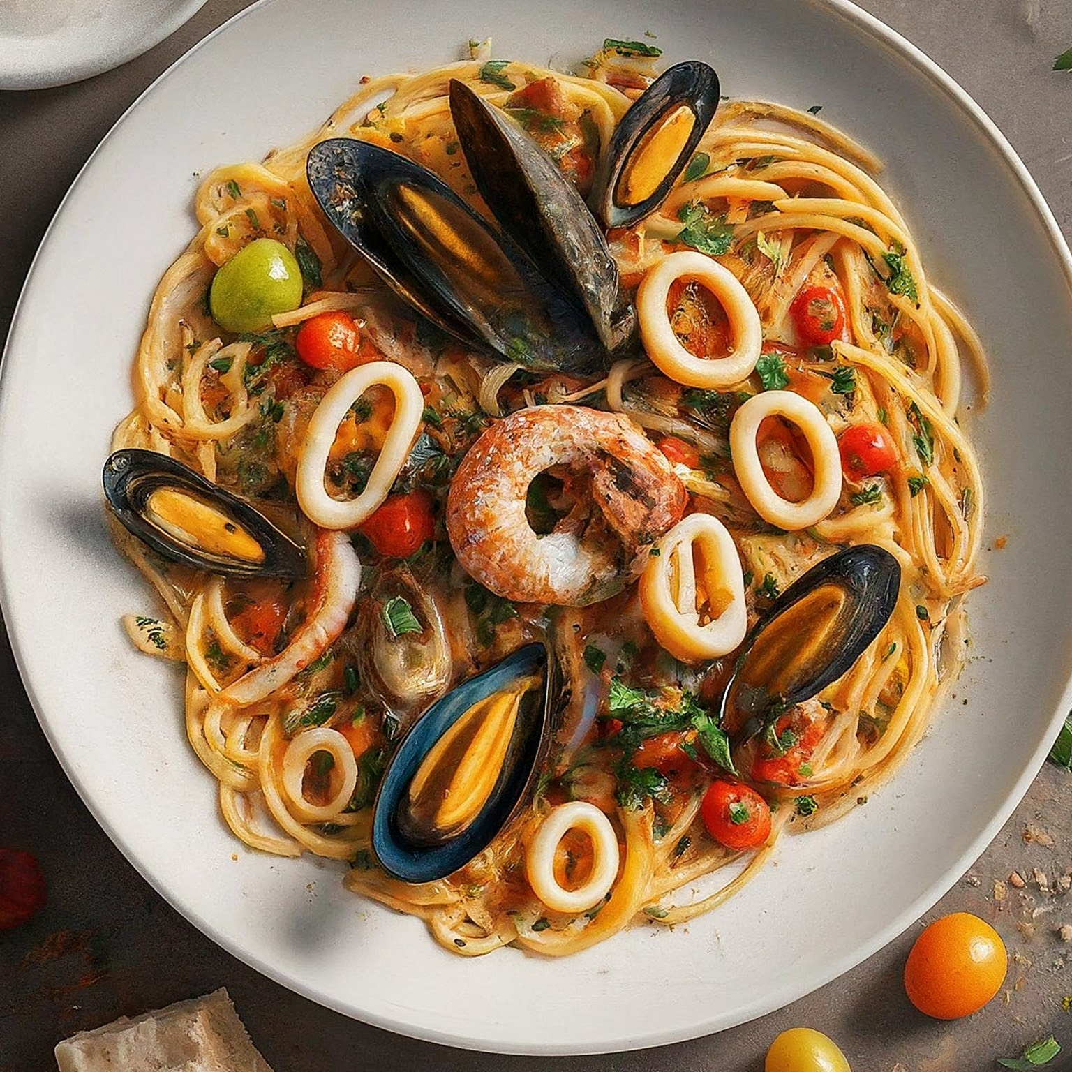 Tauchen Sie ein in die Aromen des Mittelmeers mit diesem köstlichen Spaghetti Frutti Di Mare Rezept. Zarte Spaghetti, umhüllt von einer frischen Tomatensoße mit Knoblauch, Weißwein und einer Auswahl an Meeresfrüchten, machen dieses Gericht zu einem wahren Genuss. Perfekt für ein romantisches Abendessen oder einen besonderen Anlass.
