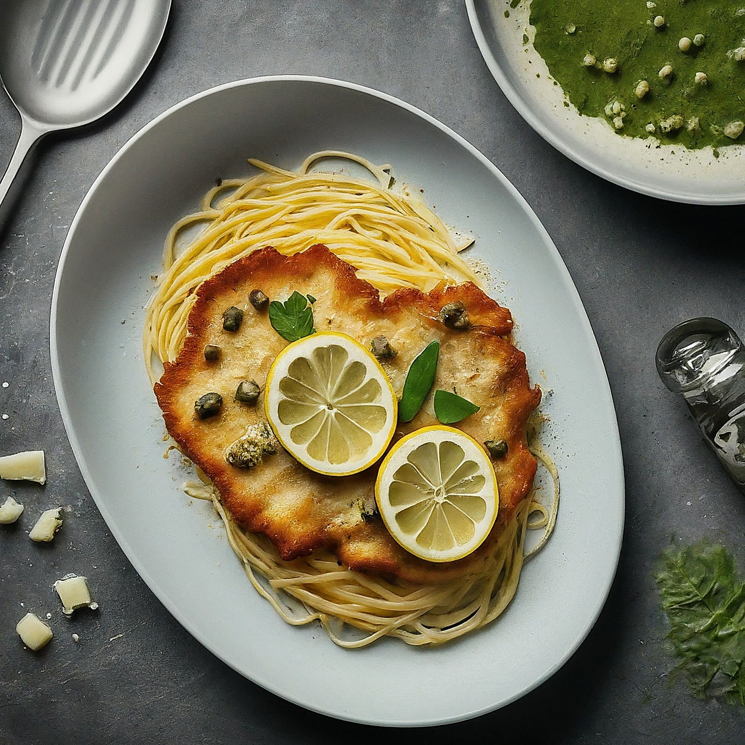 Spaghetti Milanese kombiniert die zarte, paniertierte Piccata Milanese mit einem einfachen, aber geschmackvollen Spaghetti-Gericht. Die knusprige Panade des Kalbsschnitzels harmoniert perfekt mit der leichten Säure der Zitronen-Butter-Sauce und den aromatischen Spaghetti. Ein schnelles und dennoch elegantes Gericht für jeden Anlass.