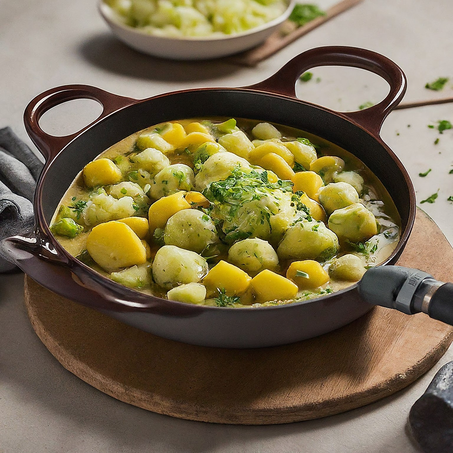 | 5. | Gemüsebrühe angießen, mit Salz, Pfeffer und optional etwas Muskatnuss würzen. |