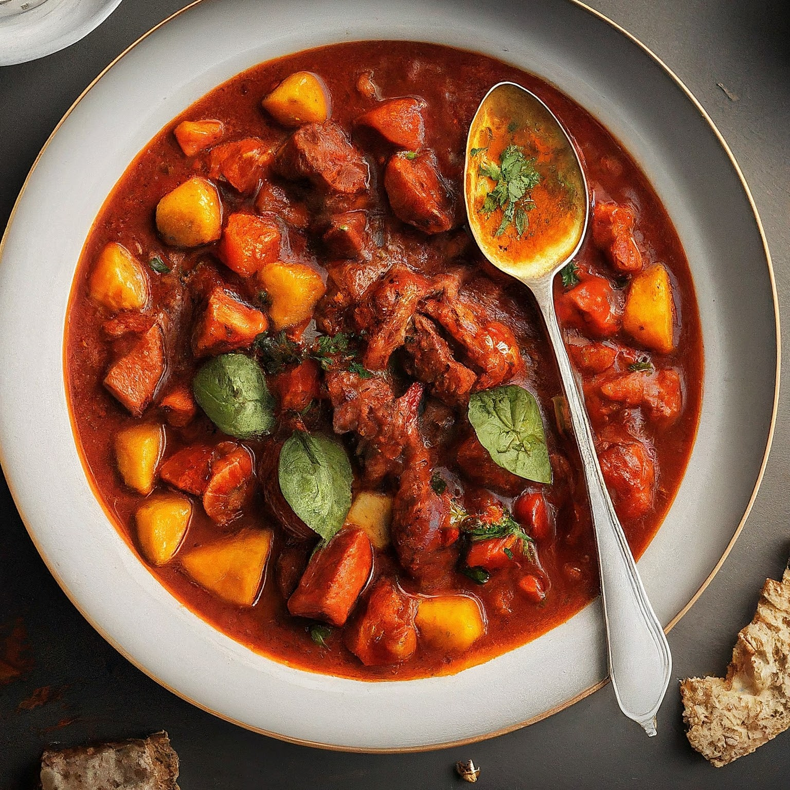 Ein deftiger und aromatischer Szegediner Gulasch, perfekt für kalte Wintertage.