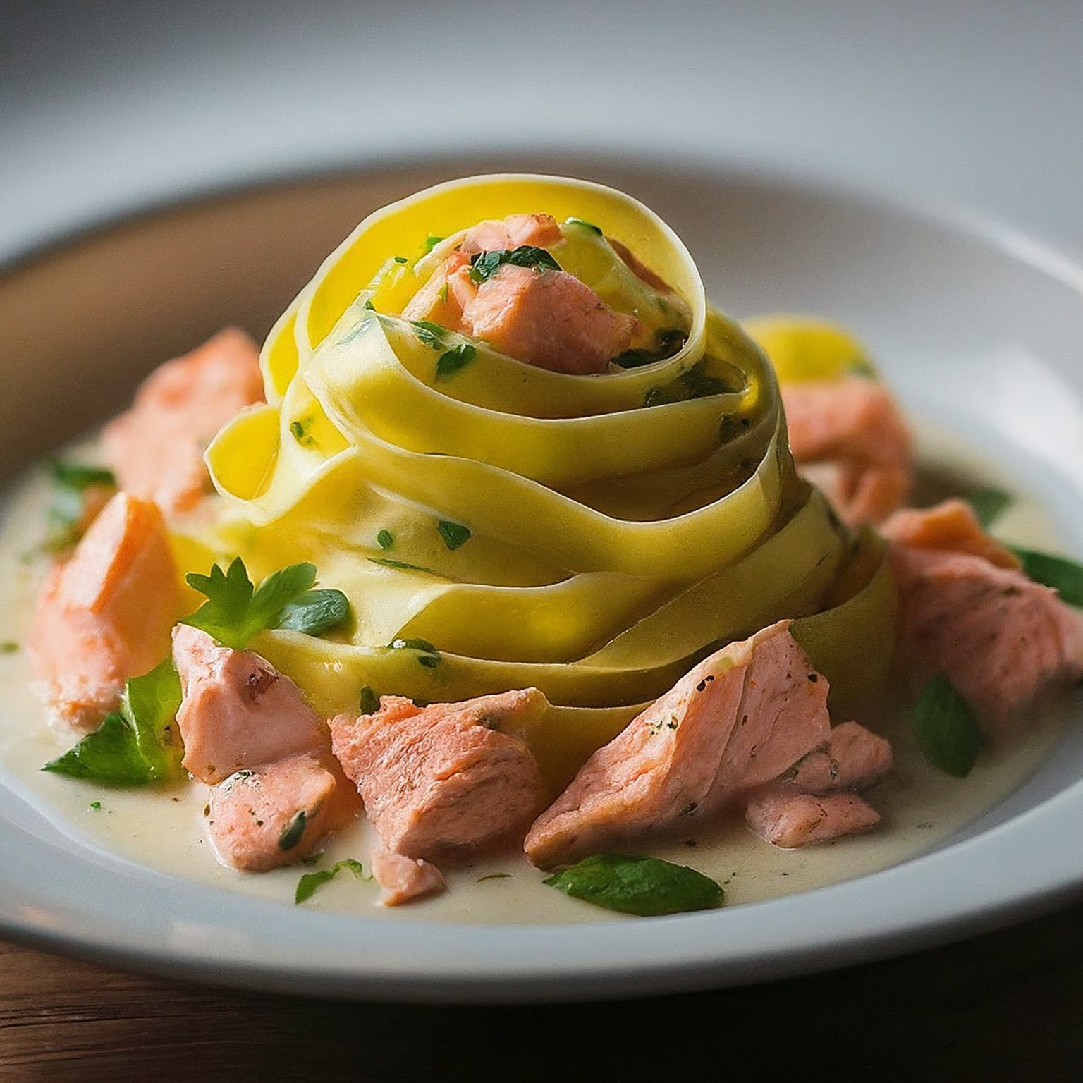 Ein schnelles und einfaches Rezept für cremige Tagliatelle al Salmone mit zartem Lachs und aromatischem Parmesan.