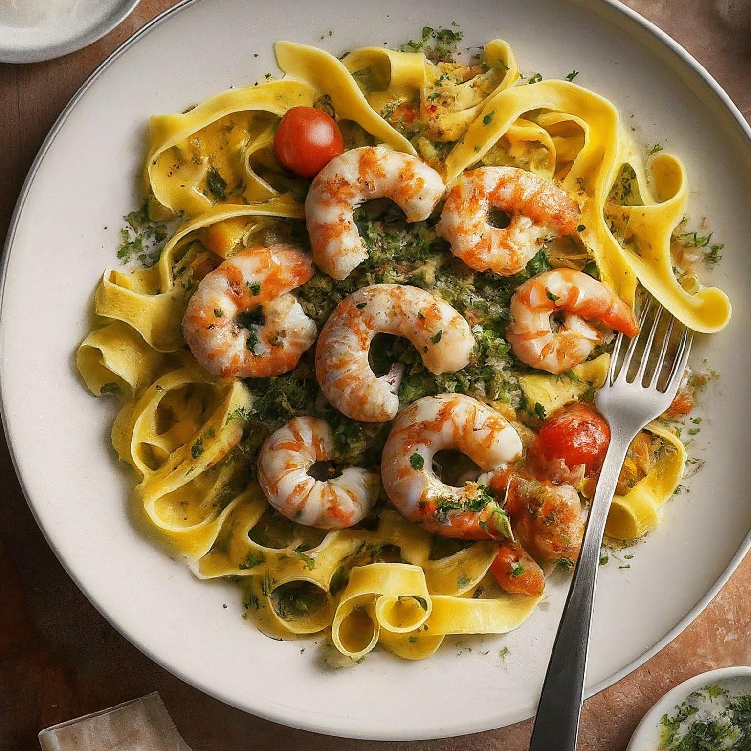 Ein schnelles und einfaches Rezept für köstliche Tagliatelle mit Garnelen in einer cremigen Sauce.