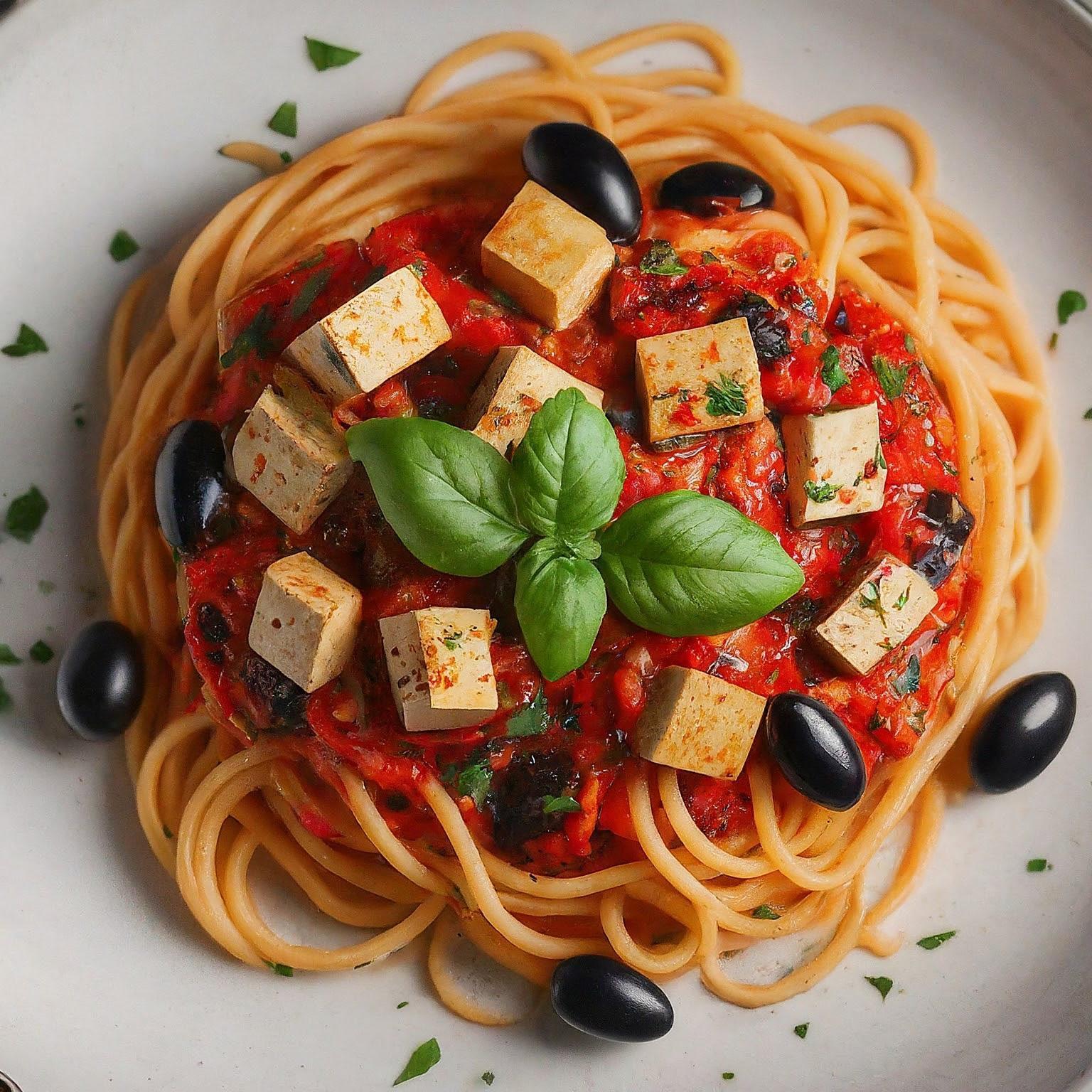 Diese vegane Variante der Spaghetti Alla Puttanesca verwendet Tofu vom Rewe als Fleischersatz und ist schnell und einfach zubereitet. Die würzige Sauce mit Oliven, Kapern und Tomaten verleiht dem Gericht eine mediterrane Note. Perfekt für ein schnelles Abendessen unter der Woche!