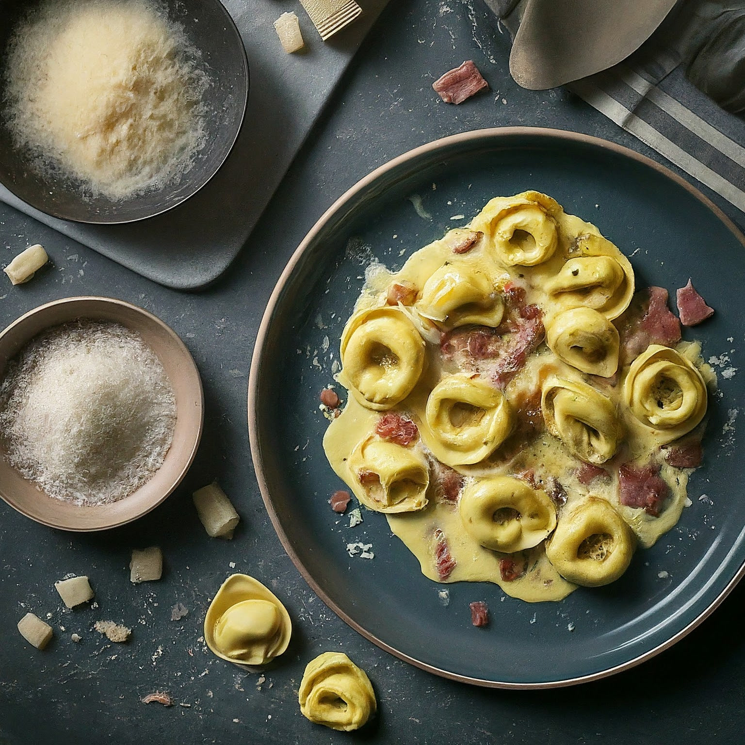 Cremige Carbonara trifft auf gefüllte Tortellini – ein schnelles und einfaches Rezept für ein köstliches Pastagericht.