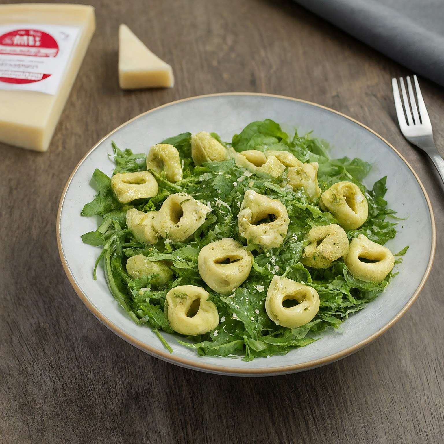 Ein schnell gemachter und dennoch raffinierter Tortellinisalat mit Pesto, Rucola und Parmesan. Perfekt für warme Tage oder als leichte Mahlzeit.