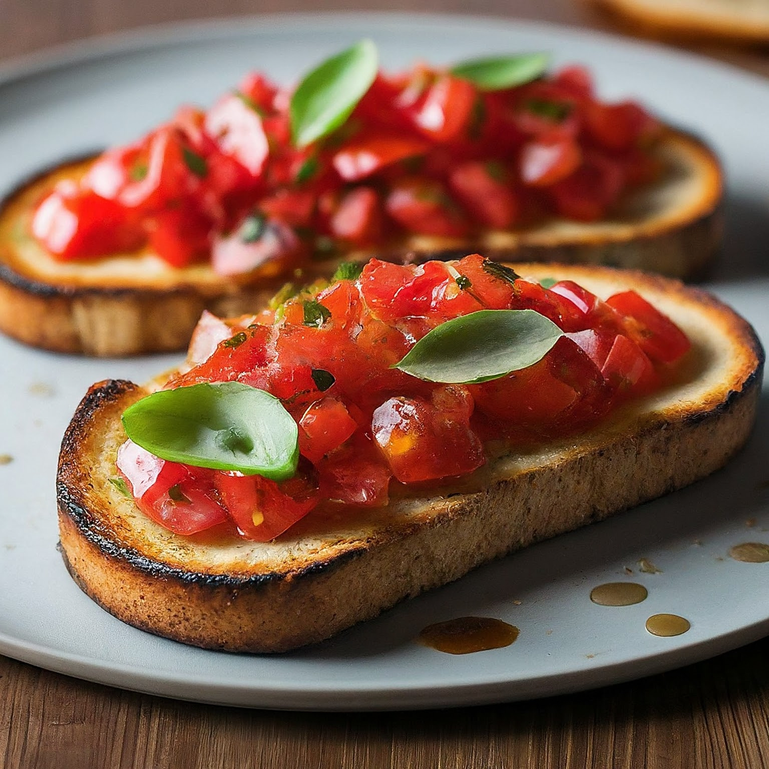 Sonnenverwöhnte Tomaten, aromatischer Knoblauch und knuspriges Brot – die perfekte Kombination für einen italienischen Klassiker. Diese Bruschetta ist ein schnelles und einfaches Antipasto, ideal als Vorspeise oder leichter Snack. Buon appetito!