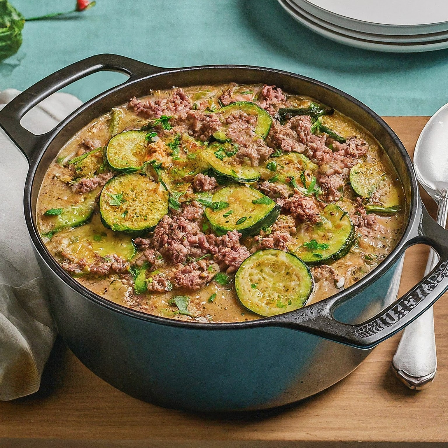 Eine schnelle und leckere Zucchini-Hackfleisch-Pfanne mit würziger Note. Perfekt für ein einfaches Abendessen unter der Woche.