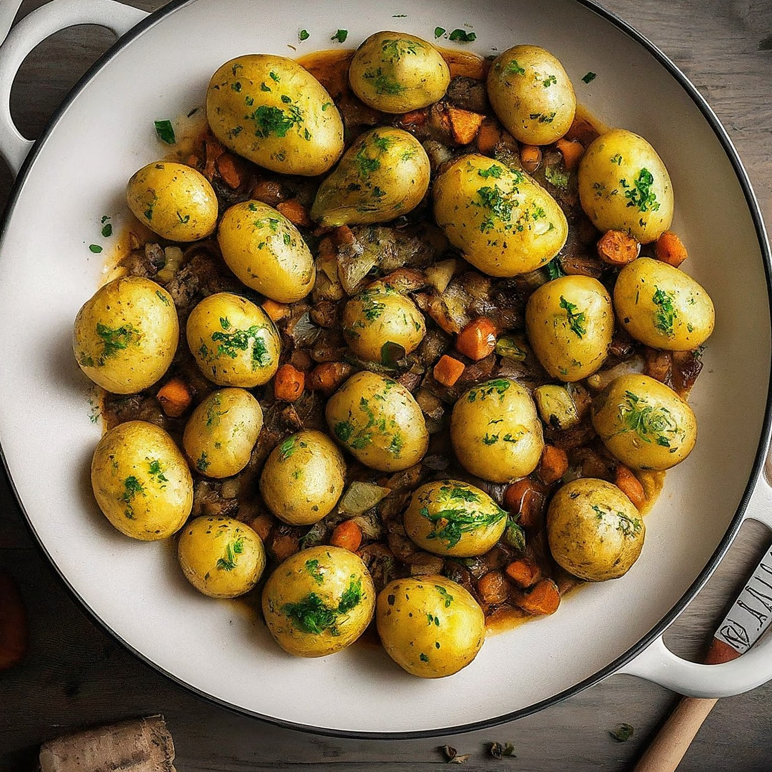 | 1 kg festkochende Kartoffeln (z.B. Linda, Laura) | |