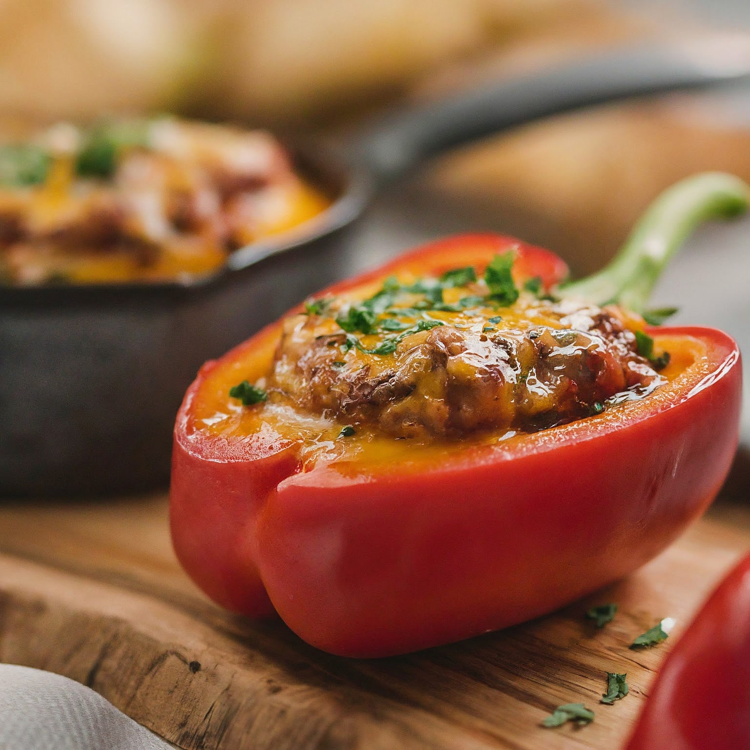 Wie lange müssen gefüllte Paprika in den Ofen? Dieses Rezept liefert die Antwort und eine Anleitung für perfekt geschmorte, gefüllte Paprikaschoten.