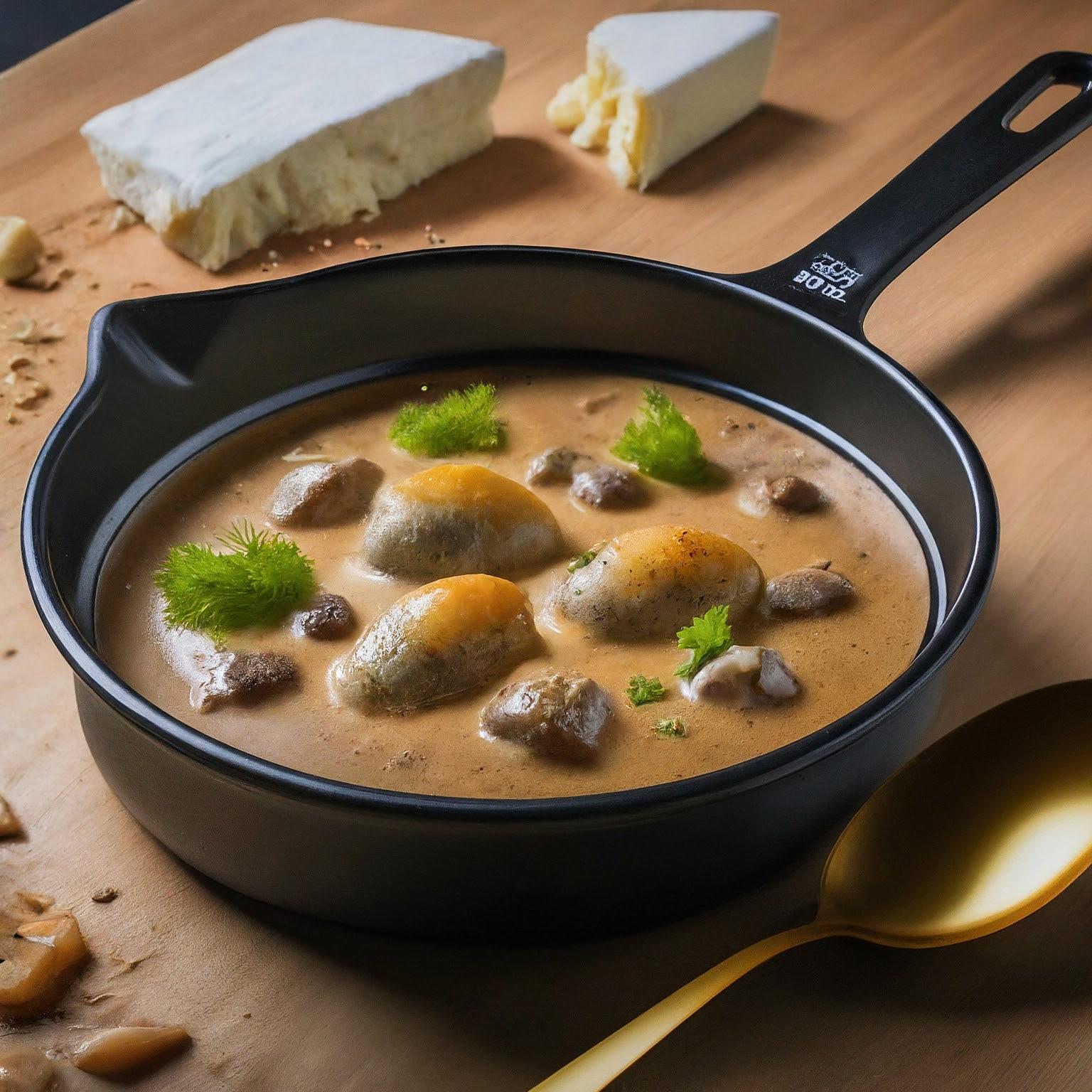 | 2. | Mehl hinzufügen und kurz anschwitzen. Mit Sahne und Gurkenwasser ablöschen. |