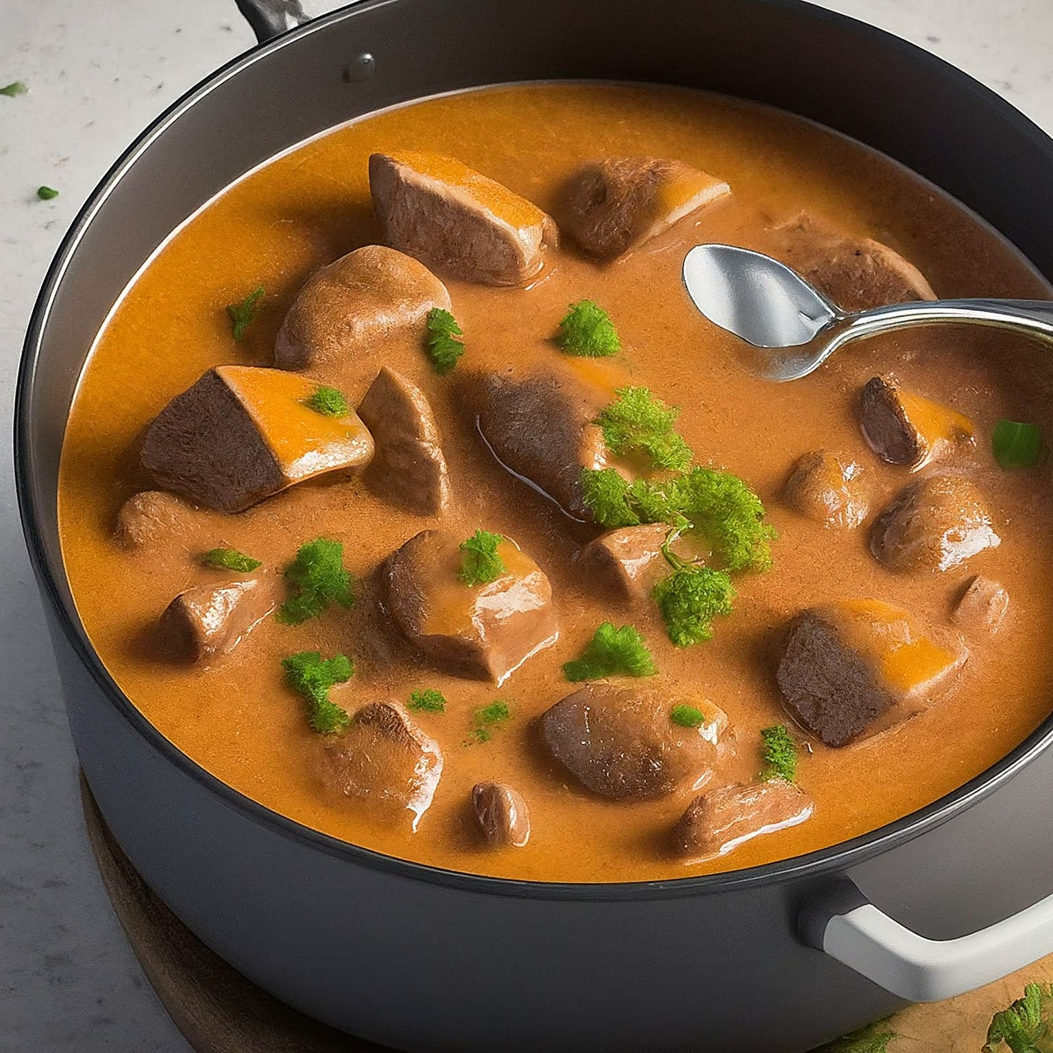 10.Gulasch mit Salz und Pfeffer abschmecken und servieren.