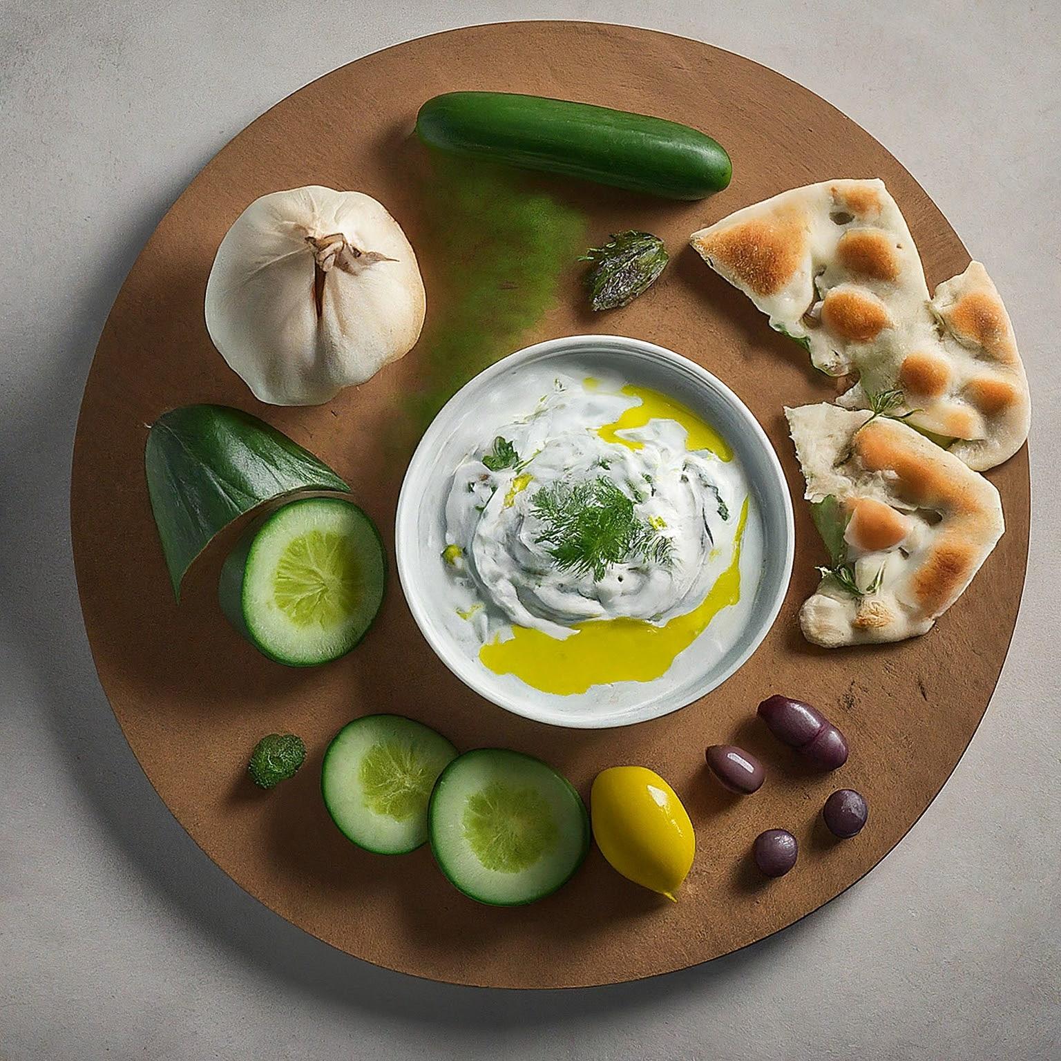 | 3. | Griechischen Joghurt, abgetropfte Gurke, Knoblauch, Olivenöl und Weißweinessig in einer Schüssel vermengen. |
