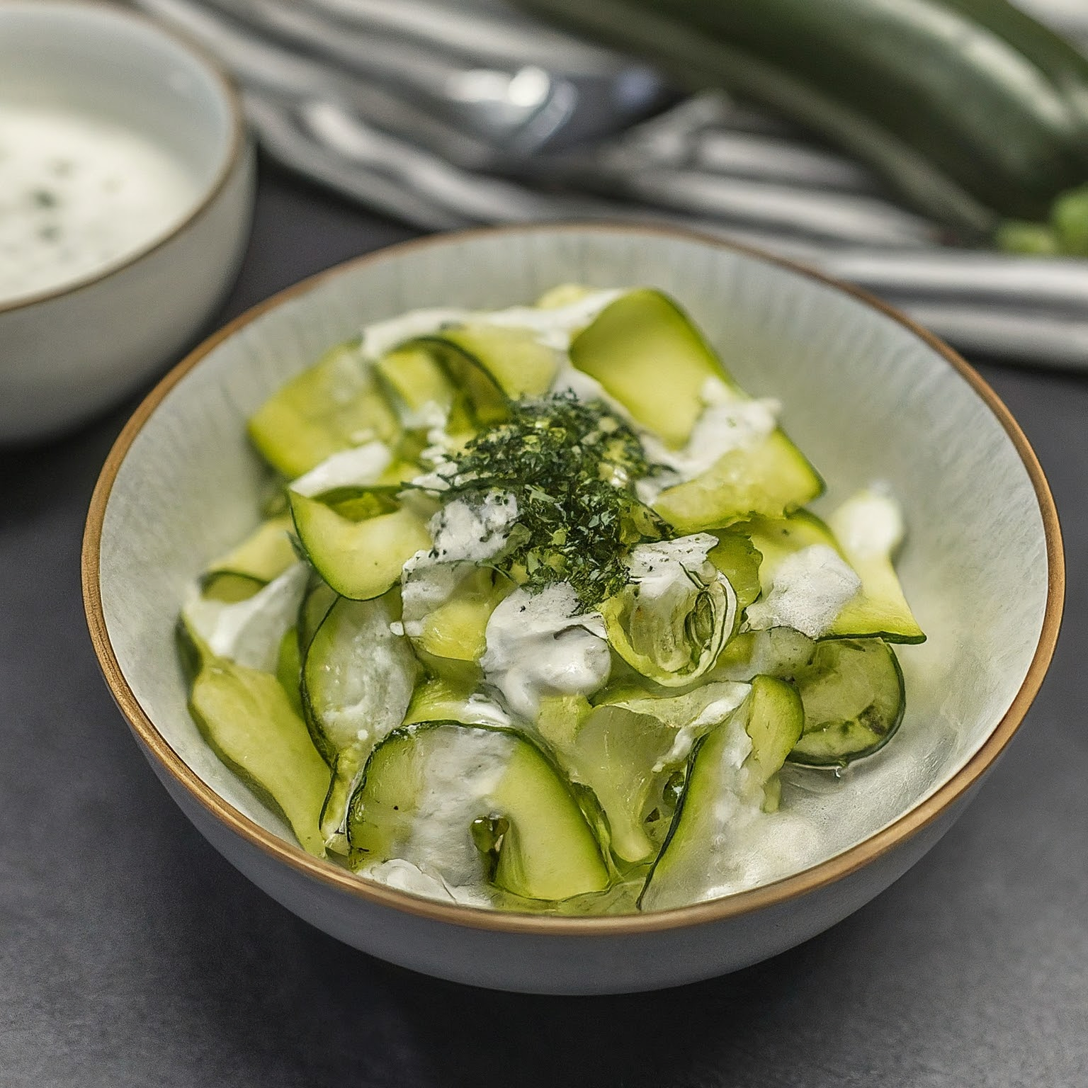 | 4. | Zucchinischeiben zum Dressing geben und gut vermengen. |