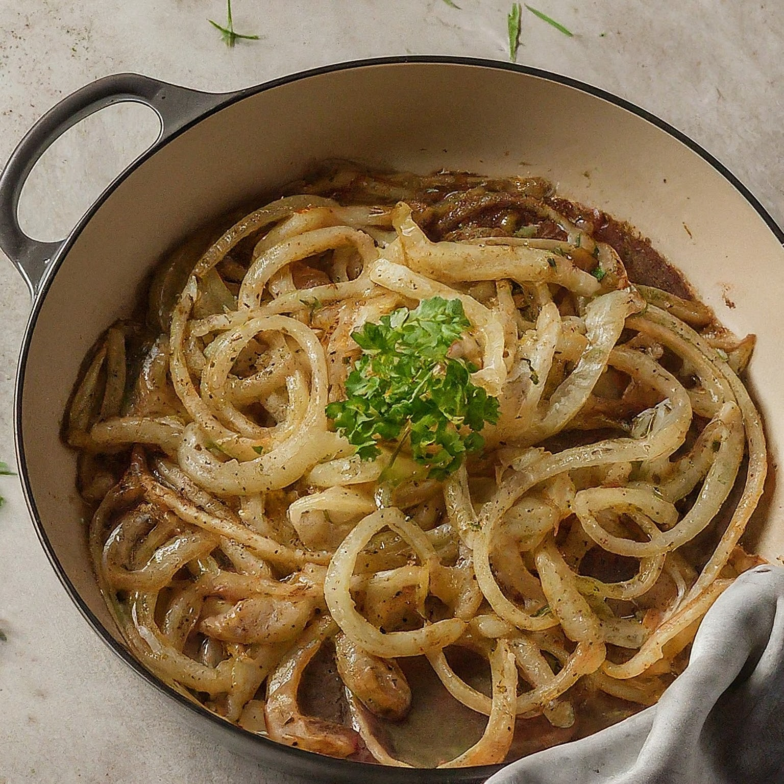 1. | Zwiebeln schälen und in dünne Ringe schneiden. |