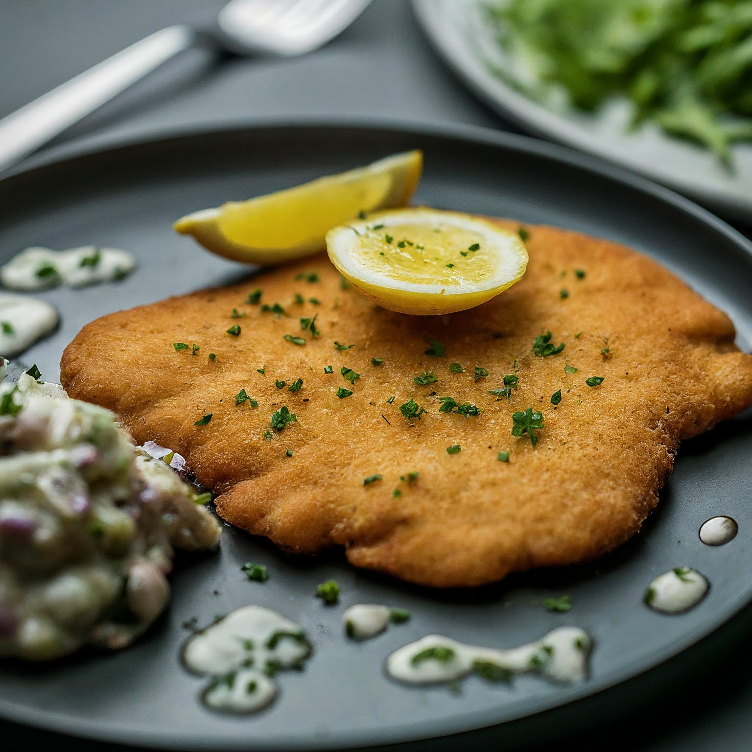1. | Schnitzel salzen, pfeffern und mit Paprikapulver würzen. |